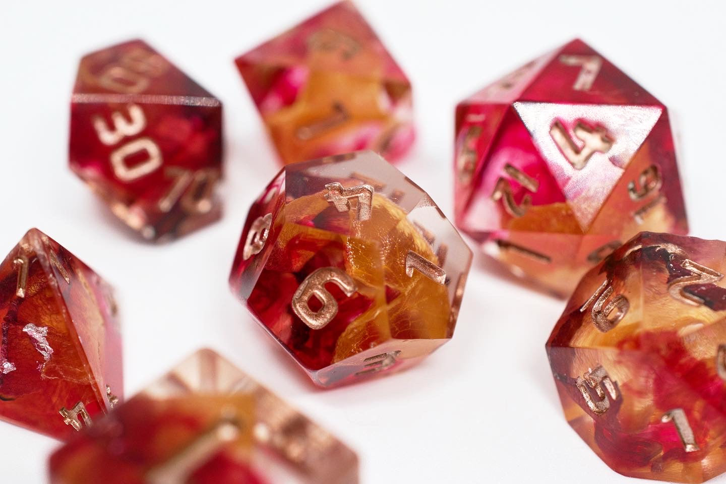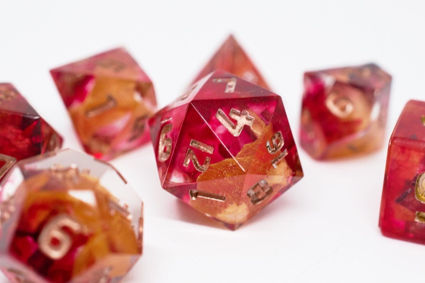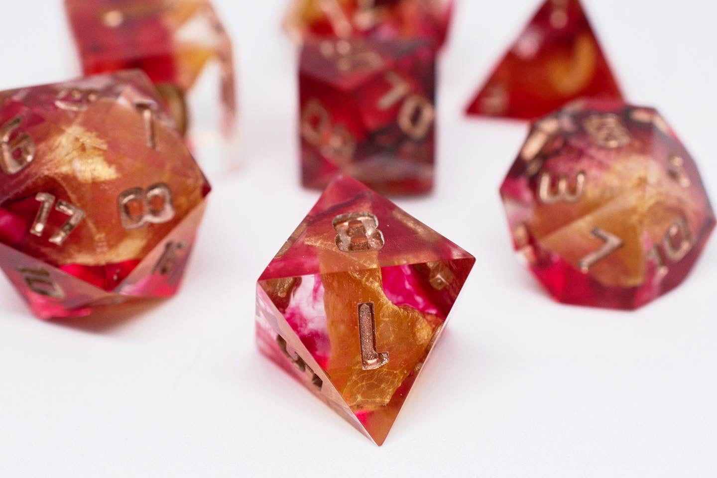 Poured, crafted, and painted by hand - these dice are a work of art, and may have imperfections but no large flaws.