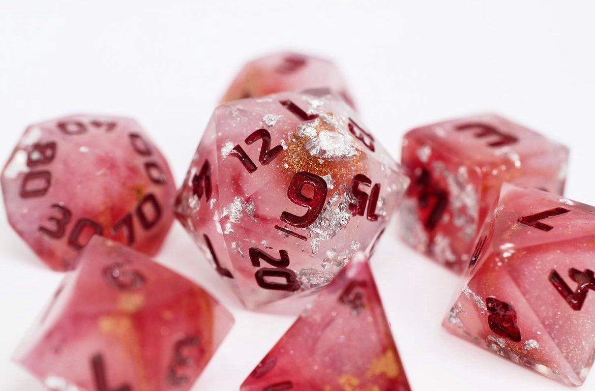 Poured, crafted, and painted by hand - these dice are a work of art, and may have imperfections but no large flaws.