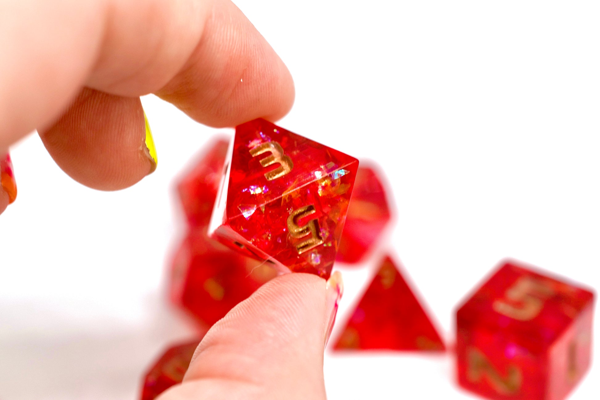 Poured, crafted, and painted by hand - these dice are a work of art, and may have imperfections but no large flaws.