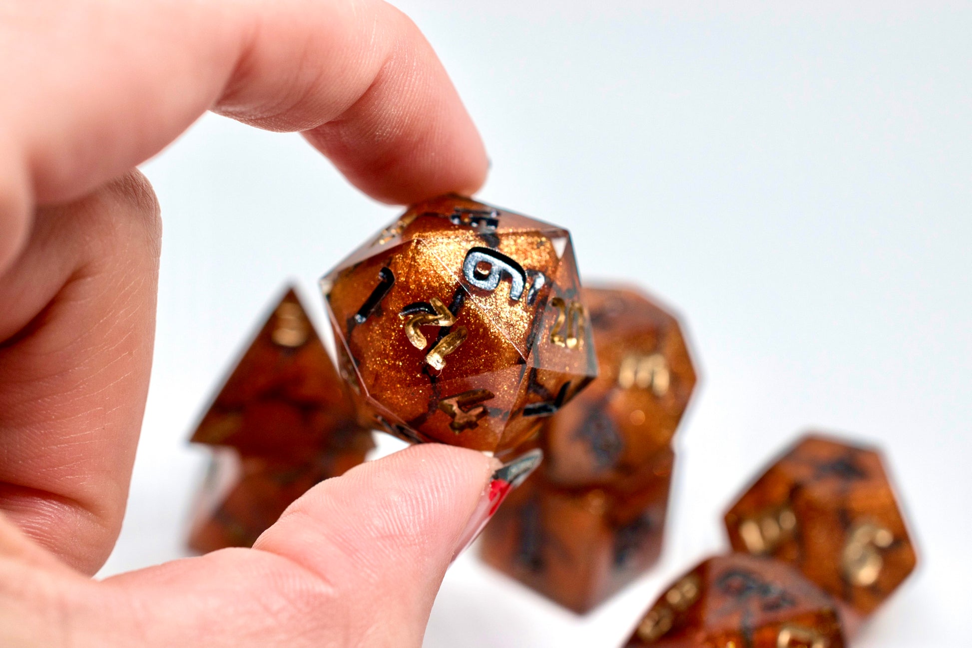 Poured, crafted, and painted by hand - these dice are a work of art, and may have imperfections but no large flaws.