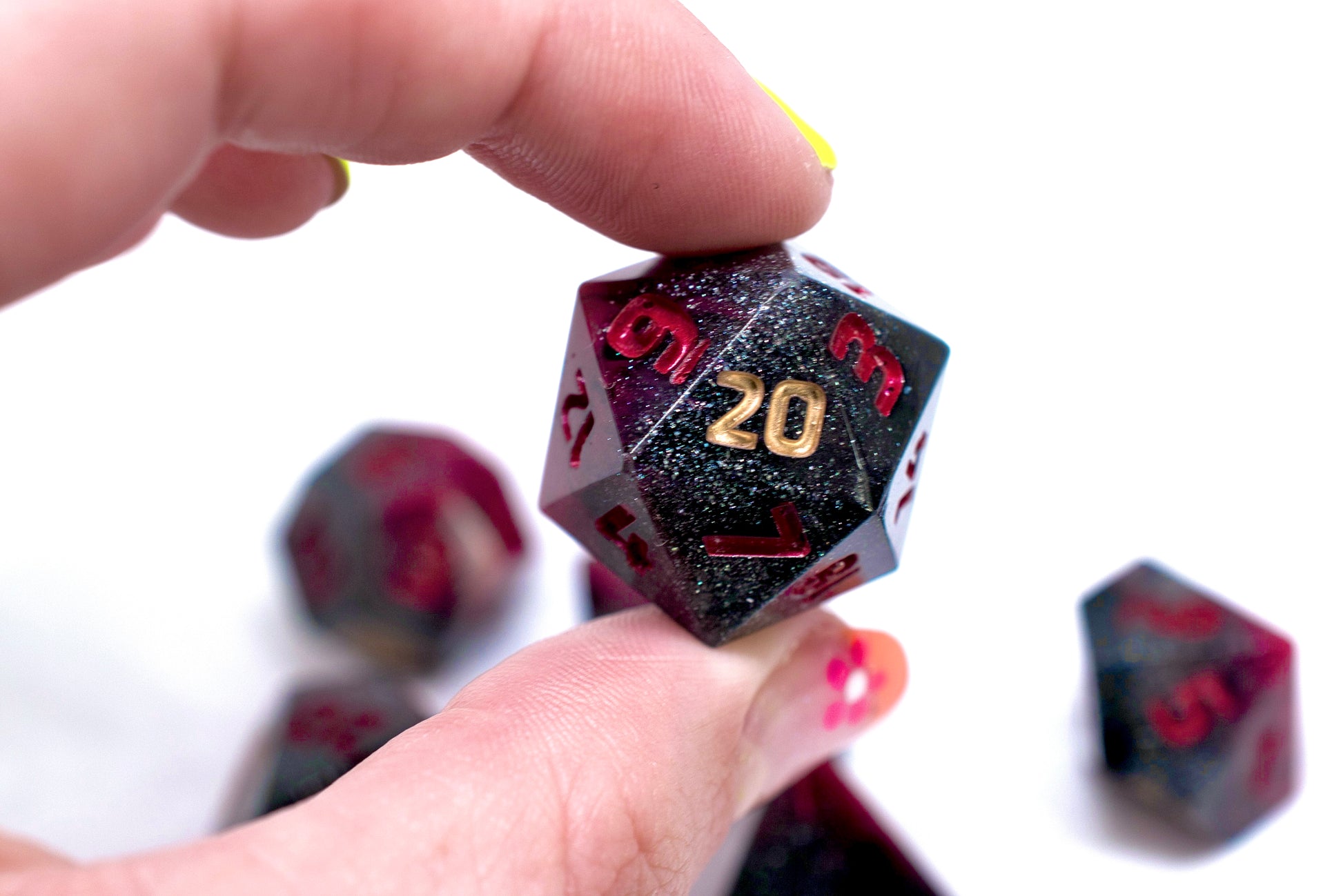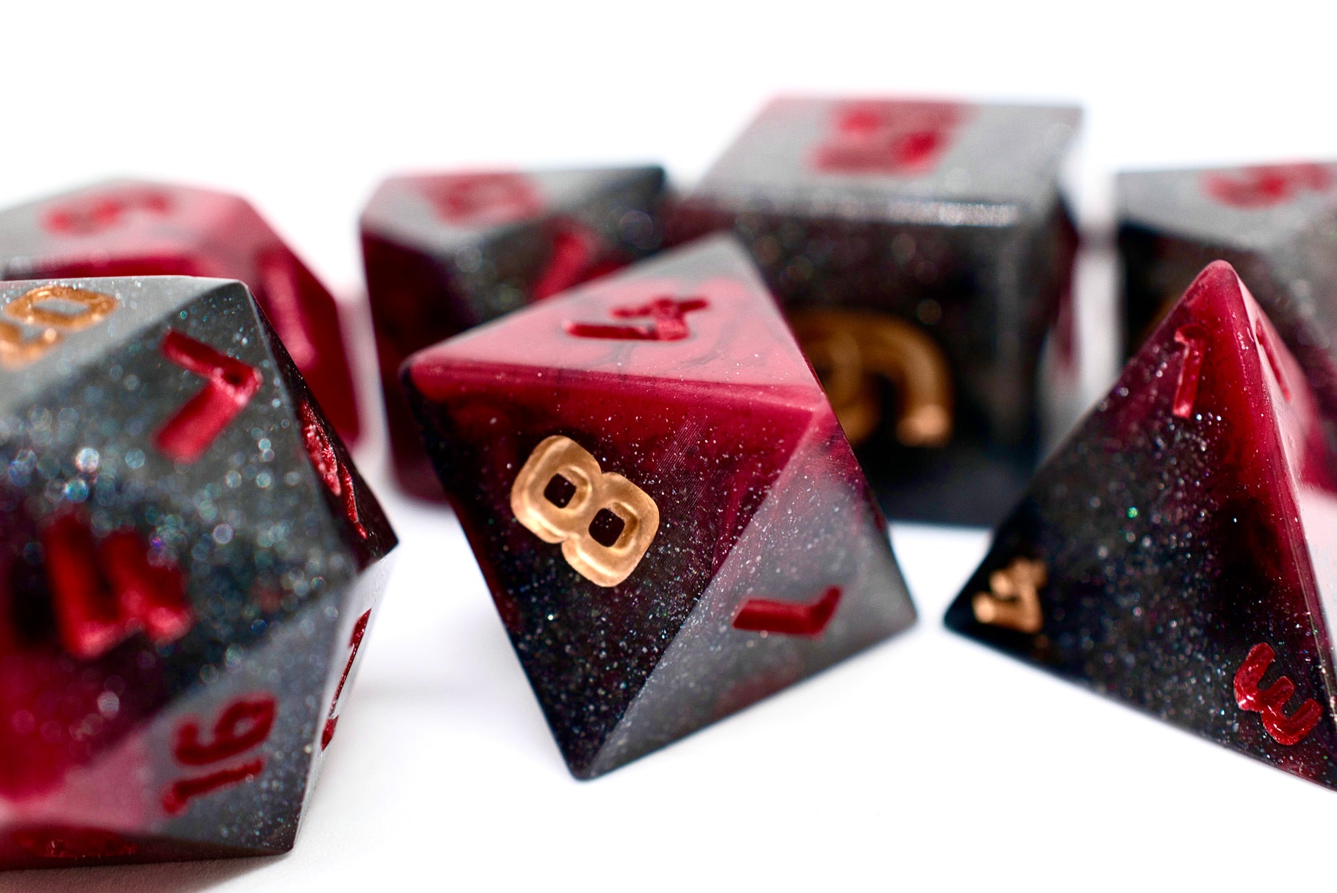 Poured, crafted, and painted by hand - these dice are a work of art, and may have imperfections but no large flaws.